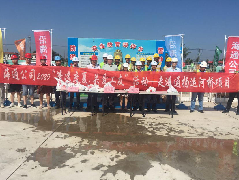 在陸雁的帶領(lǐng)下,一行人先后來到南通外國語學(xué)校項目部以及集賢路、緯六路項目及中建八局項目部,向冒著酷暑辛勤工作的施工人員表示慰問,并遞上防暑降溫物品,讓大家在炎炎夏日里真切感受到海通公司的關(guān)愛。